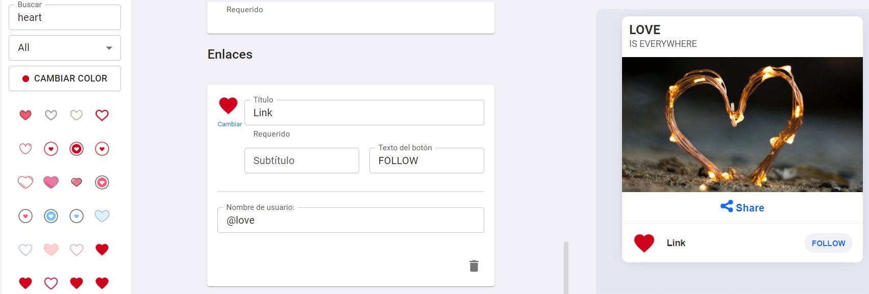 Después de haber escogido el ícono que más te guste, simplemente haz clic en el mismo y automáticamente el ícono del enlace será el deseado.