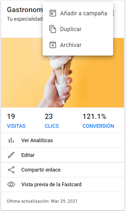 Luego de presionar ese botón, tendrás acceso a todas tus Fastcards archivadas. Recuerda, estas Fastcards se encuentran desactivadas.